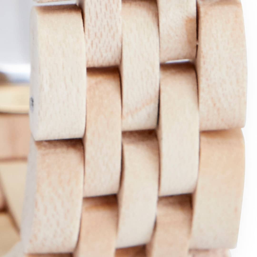 Precise Craftsmanship: The Birch is handcrafted, unique wristwear for women. Each wooden component of The Birch is lovingly carved from recycled Maplewood furniture and flaunts a versatile, neutral, and dignified beige tone.