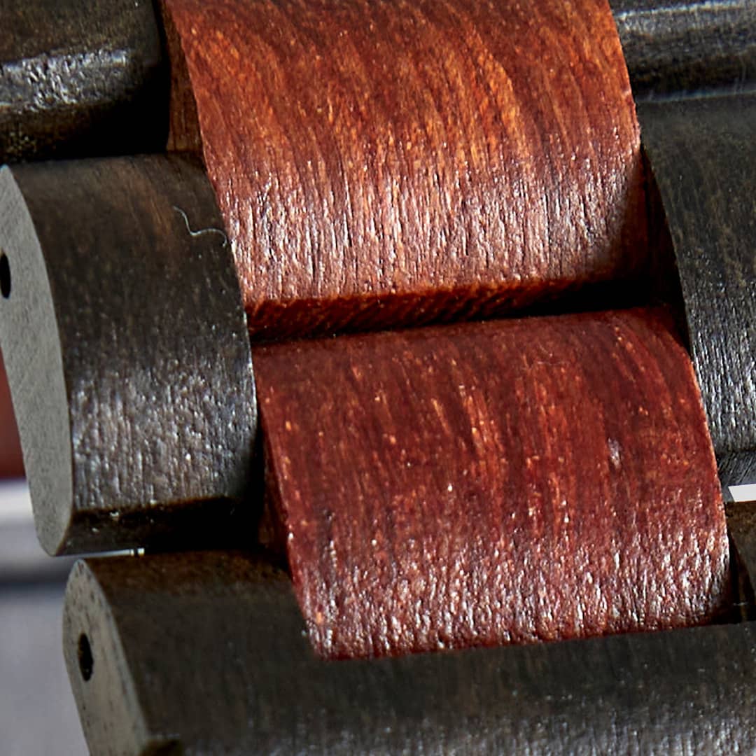 Red Sandalwood is native to southern India and parts of Southeast Asia. Characterised by its rich, deep red colour, Historically used in woodworking, dyes, and traditional medicine and now along with Ebony, common in the furniture scraps we used to craft this ethical watch.