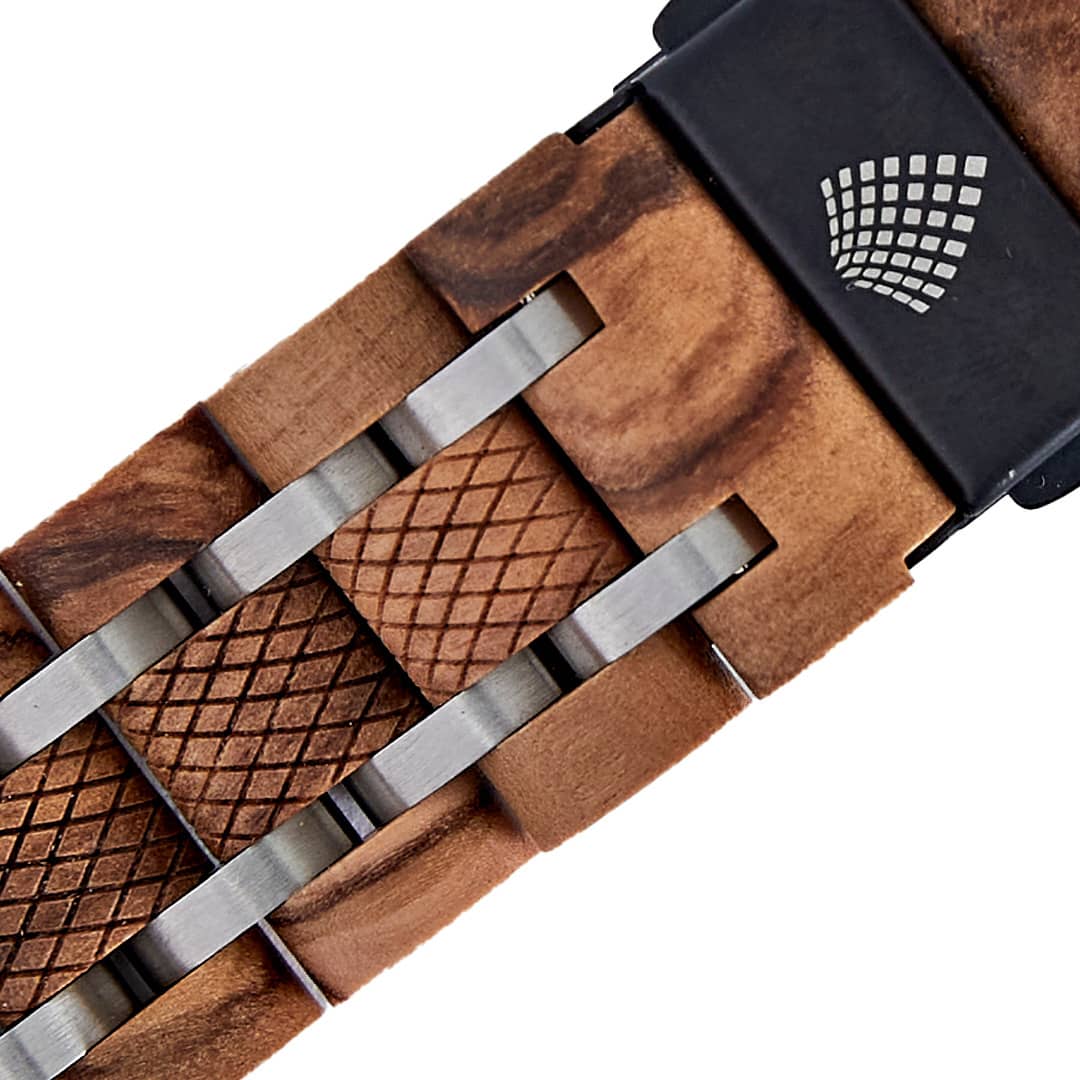 Styled by Nature: The natural colour tones and grain patterns of the zebrawood enhance the aesthetics of your Apple Watch, these are entirely unique and no two straps are the same. The wood look adds texture, antiquity, and sophistication to the modern design of your wearable tech. The wooden links of The Olive are intertwined with stainless steel links for enhanced durability and provide a look to complement your smartwatch.