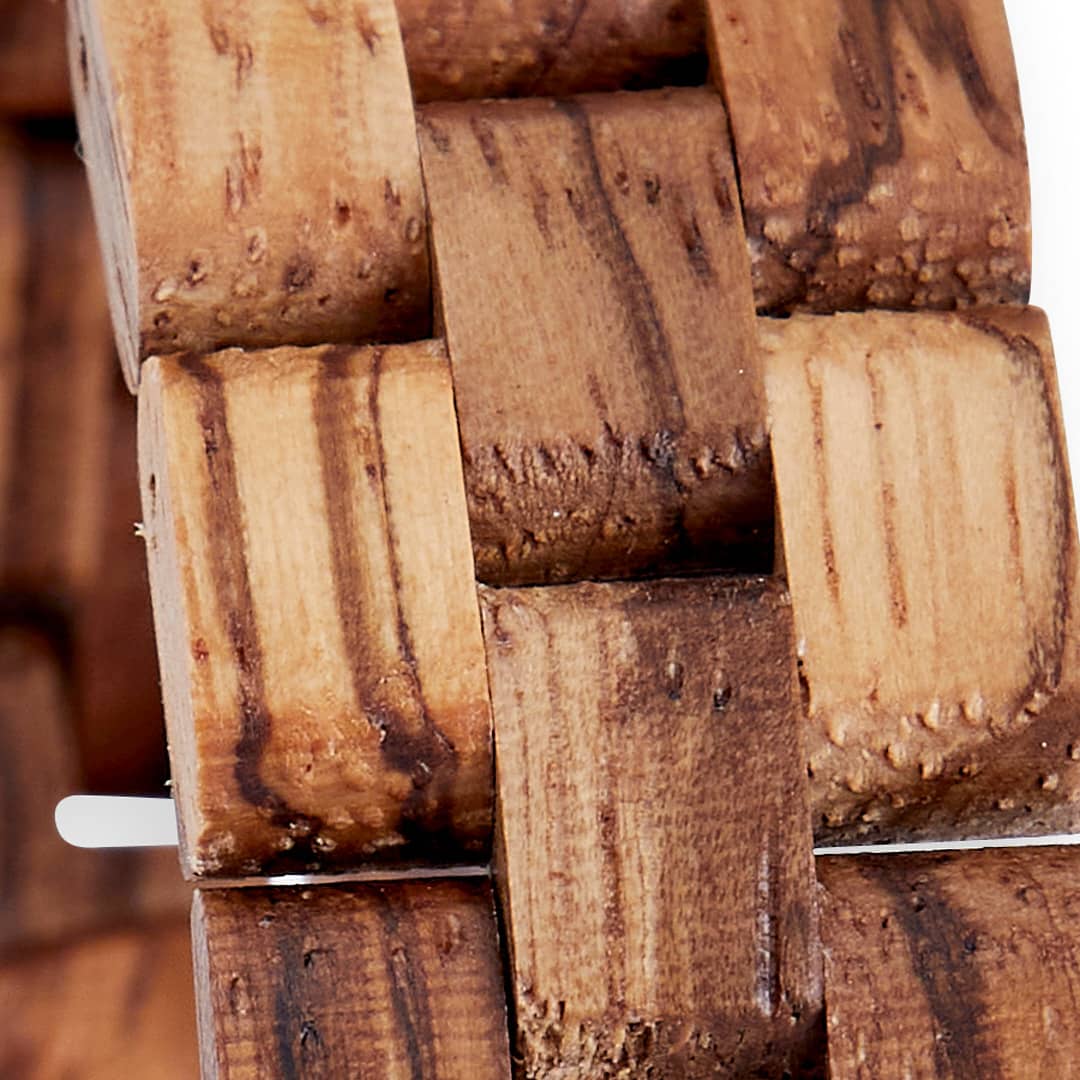 Zebrawood showcases striking dark and light stripes across a colour palette of browns visible throughout this women's watch.
